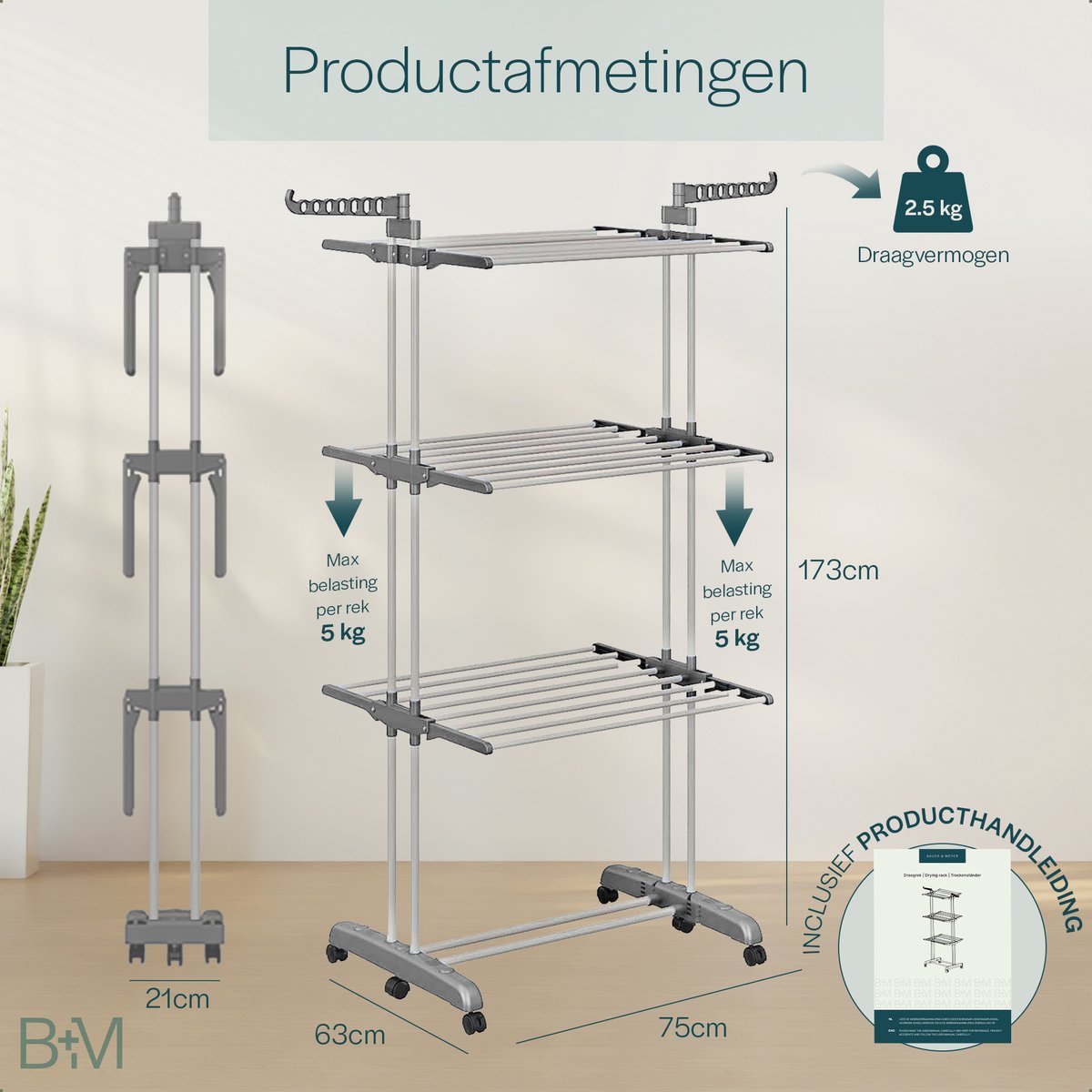 Hoe we dit willen bereiken? Door te werken met professionele en gerenomeerde fabrikanten wereldwijd, inkopen van grote aantallen (en dus schaalvoordelen behalen) en kwaliteitscontroles uit te voeren gedurende productie en bij afloop. Het merk BAUER & MEYER® levert kwalitatieve producten, met focus op veiligheid, duurzaamheid zonder het hoge prijskaartje. Bestel vandaag nog jouw droogrek!