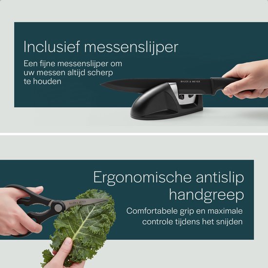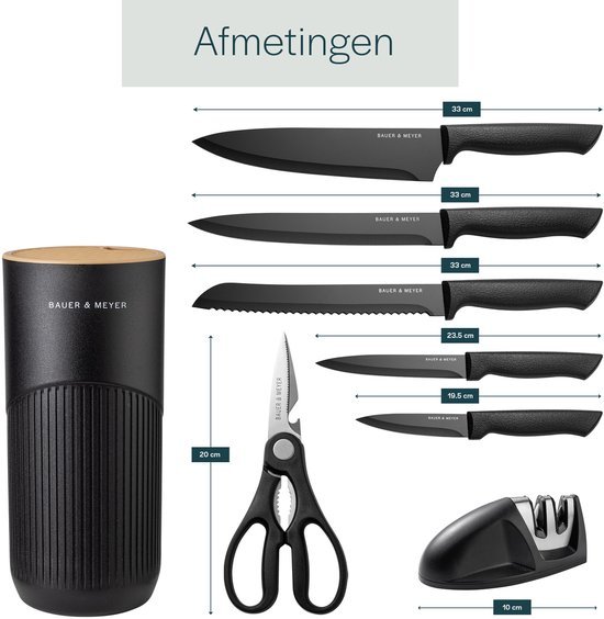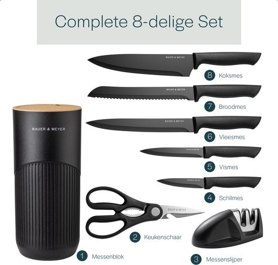 Kortom: deze 8-delige messenset van BAUER & MEYER® biedt alles wat je nodig hebt in de keuken: topkwaliteit, strak design en complete functionaliteit. Een onmisbare aanvulling voor elke keukenliefhebber!