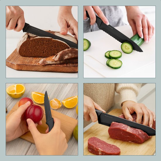 Elke snede telt. De messen zijn professioneel geslepen en razendscherp, waardoor je moeiteloos door vlees, groenten, brood en fruit snijdt. Perfect voor precisiewerk én krachtig snijwerk.