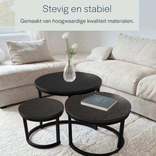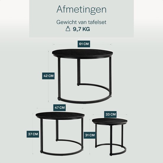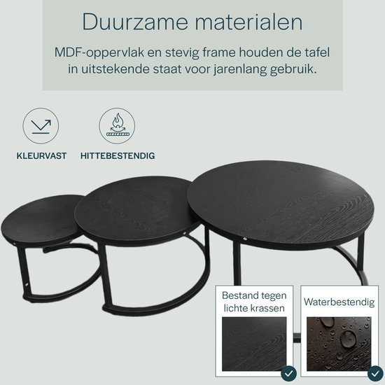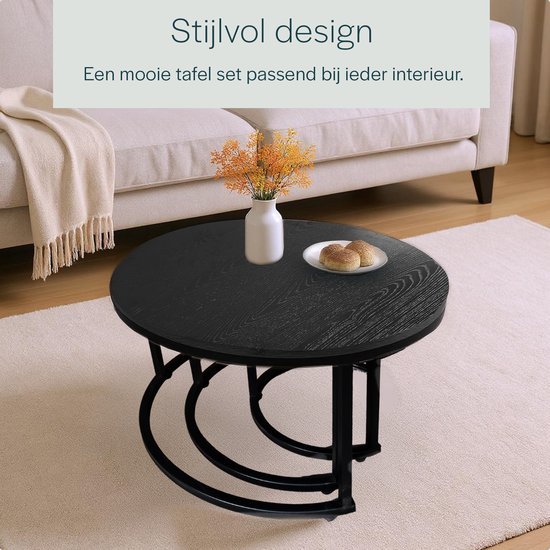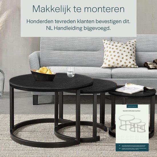 BAUER & MEYER® Salontafel rond – Industrieel – Set van 3 Salontafels – Bijzettafel – Zwart
